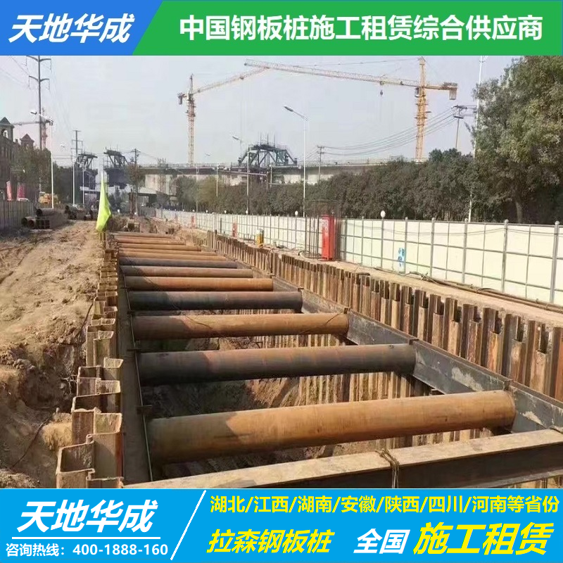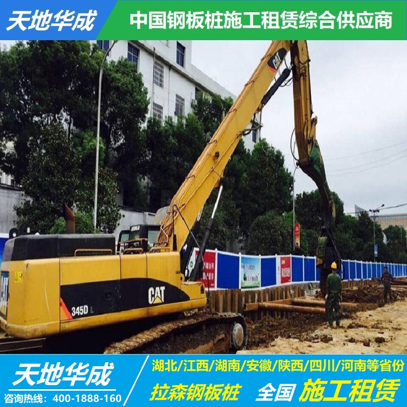 天地华成市政工程有限公司主营:钢板桩打桩机、钢板桩设备、履带吊振动锤、拉森钢板桩施工。我公司为客户提供租赁服务:打桩机出租,钢板桩租赁,拉森钢板桩出租,打桩机租赁,震动锤租赁。专业服务于城市道路、桥梁、地铁、地下排水、房建等工程项目公司。公司拥有 60台桩机+100人团队+1000个工程案例,遍布湖北/陕西/安徽/河南/四川/云南/重庆/湖南等12地拥有12家分公司,深受客户好评不断。全国咨询热线:400-1888-160 13628690678 联系人:万经理